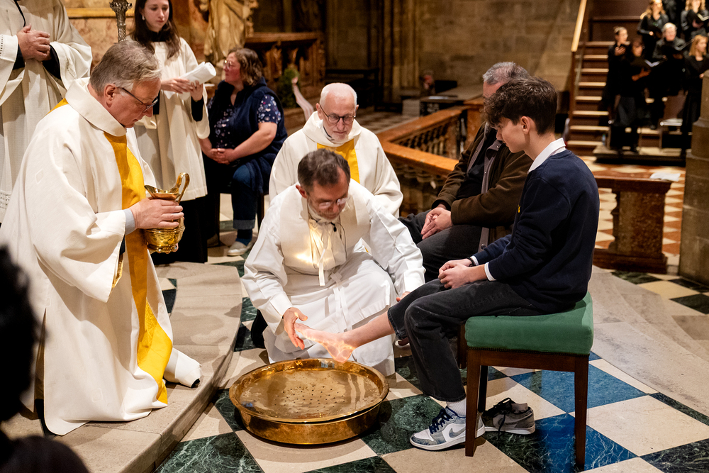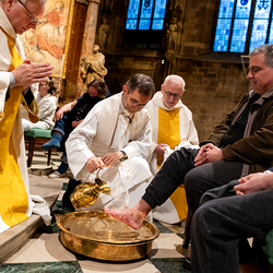 Die Geschichte vom Gründonnerstag sei eine hochaktuelle, erklärt Pater Jörg Thiemann CMM: "Am Gründonnerstag dürfen wir uns daran erinnern, dass Jesus auch uns die Füße wäscht. Das Waschen der Füße ist ein Symbol für den Dienst Jesu an uns. Jesus vergibt auch uns die Sünden. Wenn Jesus seinen Jüngern die Füße wäscht, auch dem Judas, dann zeigt er: Niemanden schließt er von seiner Liebe aus. Wir sind aufgefordert, genau so zu handeln. Jesus sagte: 'Wenn nun schon ich euer Meister und Herr euch die Füße wasche, dann müsst auch ihr einander die Füße waschen", erklärt Pater Thiemann die Symbolik der Fußwaschung am Gründonnerstag. Die Fußwaschung wird heute in allen Bischofskirchen durchgeführt, wo der Bischof zwölf ausgewählten Personen die Füße wäscht.
