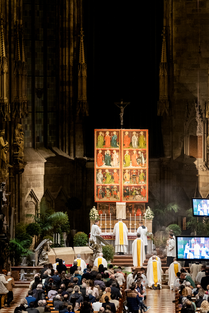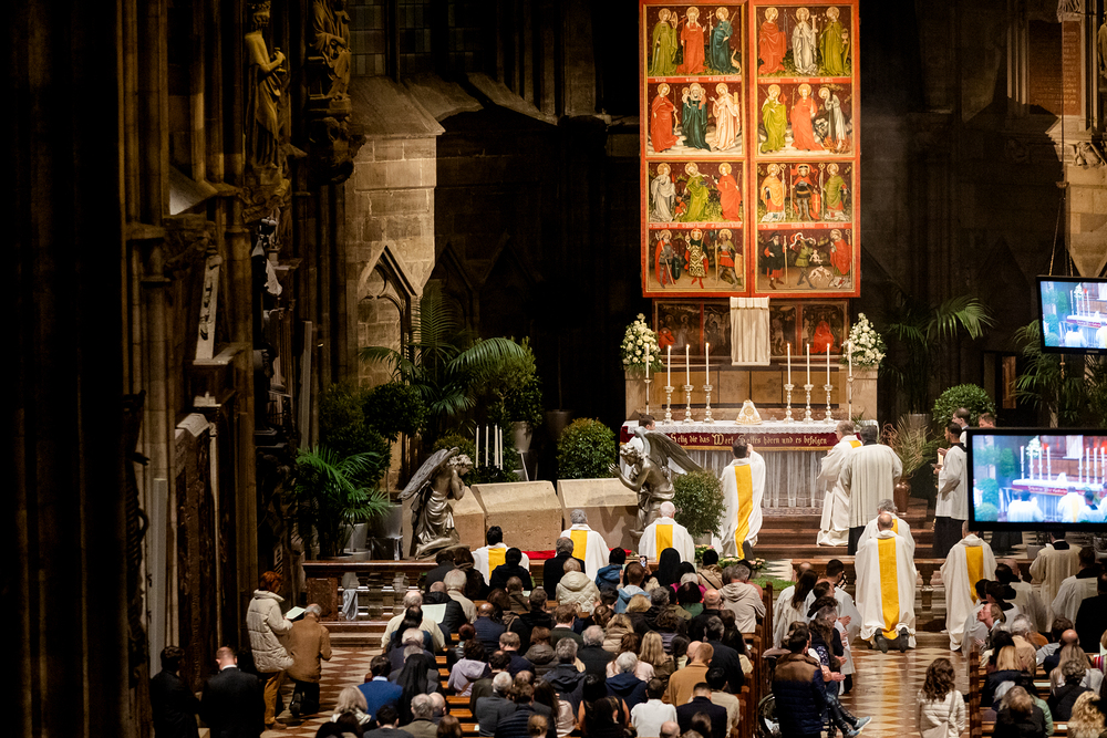 Die Feier am Gründonnerstag endet mit der Übertragung des Allerheiligsten, also den konsekrierten Hostien, an einen anderen Aufbewahrungsort, der Altar wird abgedeckt und die Gläubigen werden zur nächtlichen Anbetung eingeladen. Eröffnet sind damit die "Drei österlichen Tage vom Leiden, Sterben und Auferstehen des Herrn", Karfreitag, Karsamstag und Ostersonntag.