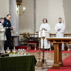 Am Mittwoch feierten die katholischen Gemeinden und Gemeinschaften des 18. Bezirks im Rahmen einer speziellen Messfeier, die von Radio Maria übertragen wurde, in der Pfarrkirche Weinhaus die Verteilung die vom Herrn Erzbischof geweihten Heiligen Öle. Dechant P. Arkadiusz Zakręta CM stand der Feier vor. Wir waren mit der Kamera dabei.